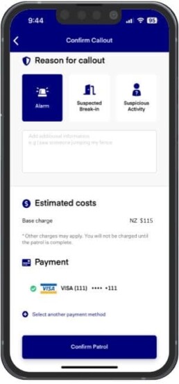 Select your nominated address (you can save 2 addresses - ie home and business). Confirm the health and safety risks. Supply a brief explanation of why you require the security patrol.